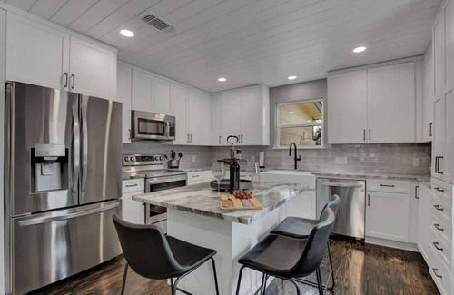 Welcome to our brand new vacation home with a pool in the heart of downtown Dripping Springs, Texas. This prime location offers proximity to wineries, breweries, distilleries, wedding venues, shopping, and restaurants. The freshly remodeled home is perfect for groups, families, and wedding parties. Use it as your home base to explore the beautiful Texas Hill Country. Enjoy the ideal location and pool during your stay. Book now and create unforgettable memories!