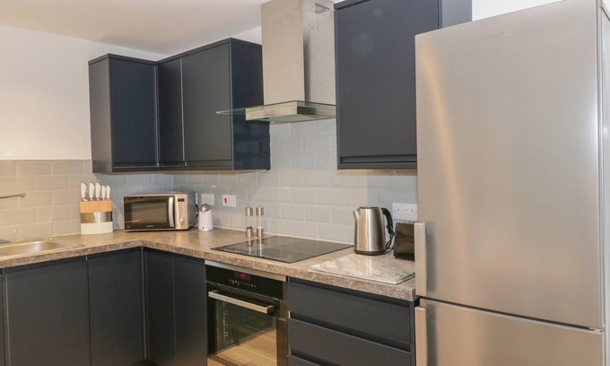 The kitchen is equipped with a refrigerator and a dishwasher, as well as an electric kettle, cookware, and a toaster. And you won't have to pack extra clothes, because you'll also have a washing machine. Other amenities at this 2-bedroom, 2-bathroom rental include heating and wardrobe or closet.