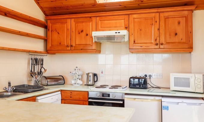 Amenities: Air Source Heat Pump using 100% renewable energy. Oven, grill, hob, microwave, fridge, freezer, dishwasher, washing machine. Smart TV, WiFi. Fuel and power inc. in rent. Bed linen and towels inc. in rent. Travel cot and high chair not provided. Designated parking bay for 1 car, plus additional visitors' parking for 2 cars. Balcony with furniture. Enclosed private garden with lawn and furniture. Two well-behaved dogs welcome. Sorry, no smoking or vaping. Shop 0.1 mile, pub 0.1 mile. Note: This property only accepts Friday changeovers