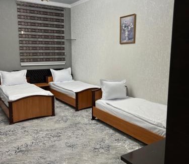 DUNYO Hotel is located in Jizzax and features a garden. The property has a 24-hour front desk, airport transportation, room service and free WiFi throughout the property. The rooms come with air conditioning, a flat-screen TV with satellite channels, an electric tea pot, a bath, free toiletries and a closet. At the hotel, the rooms include a private bathroom with a hairdryer and slippers. Guests at DUNYO Hotel can enjoy an Asian or a halal breakfast.