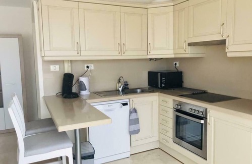 This beautiful duplex apartment (110m2 interior) with two spacious bedrooms, bathroom, bright living room with sofa bed, open kitchen and two large south-facing terraces (total 60m2 exterior) is suitable for 2-8 people and was completely redecorated in December, offering every comfort. & luxury was provided; large internet TV with Netflix, YouTube, TV-Vlaanderen, replay TV, super-fast internet with fiber cable, dishwasher, washing machine, hairdryer, children's equipment (chair, travel bed, toys, ...), parasol, lounge chair on the covered terrace below + luxury double bed lounge on the sun terrace above, sunbeds by the pool, towels, bed linen, private covered parking adjacent to the door of the apartment.