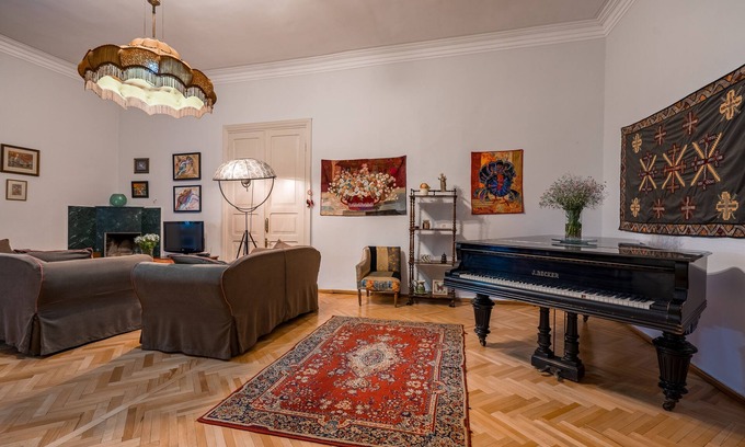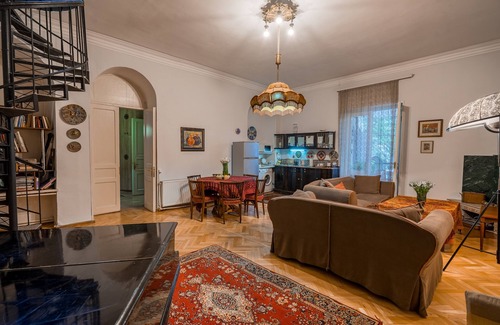 Apartment is located in the very heart of Tbilisi - 70 meters from the main Rustaveli avenue,next to State Conservatory and Supreme Court. its NEWLY renovated airy 2 floor apartment, with fabulous high ceiling, fireplace and green terrace is the perfect accommodation for groups , families and for individuals as well , who wishes to reach in a few minutes on foot the major places of Tbilisi.