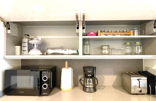 The kitchen is equipped with an oven, a stovetop, and a refrigerator, as well as a coffee maker, a microwave, and cookware. Enjoy the WiFi and TV. Bathroom amenities include a hair dryer, towels, and toilet paper. And because there's access to laundry facilities, you can go a bit lighter on your packing. Other amenities at this 2-bedroom, 2-bathroom rental include bed sheets, a desk, an ironing board, and heating.