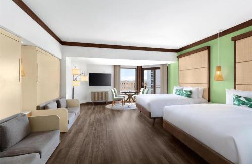 Set on Tumon Beach, Dusit Beach Resort Guam offers rooms with a balcony and sea views. This hotel features an onsite shopping mall, a fitness center and 5 restaurants. Surrounded by lush tropical gardens, there is a lagoon pool with a cascading waterfall and water slides. The resort’s signature restaurant, Palm Café, offers international cuisine, including a Japanese lunch buffet. You can grab a coffee from Dusit Gourmet, or enjoy a casual outdoor meal from Beach House Grill. Bambu Bar offers vibrant evening entertainment, with an extensive cocktail menu. Guests can unwind with a relaxing massage or facial from Namm Spa. The property features a hot tub, a children’s playground, and a kid’s club. A range of business and function facilities are available.