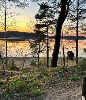 DWA DOMKI BORSK in Borsk provides accommodations with a private beach area, a garden, and barbecue facilities. This beachfront property offers access to a balcony, free private parking, and free Wifi. On clear days, guests can head outside to enjoy the vacation home's outdoor fireplace, or simply kick back and relax. The vacation home provides guests with a terrace, lake views, a seating area, a flat-screen TV, a fully equipped kitchenette with a dishwasher and a microwave, and a private bathroom with shower. A fridge and stovetop are also provided, as well as a kettle. At the vacation home, each unit is equipped with bed linen and towels. Guests can enjoy a meal at the on-site family-friendly restaurant, while packed lunches are also available upon request. Guests at DWA DOMKI BORSK will be able to enjoy activities in and around Borsk, like walking tours. Outdoor play equipment is also available for guests at the accommodation. Kaszuby Ethnographic Park is 13 miles from DWA DOMKI BORSK, while Bory Tucholskie National Park is 21 miles away. Gdańsk Lech Wałęsa Airport is 45 miles from the property.