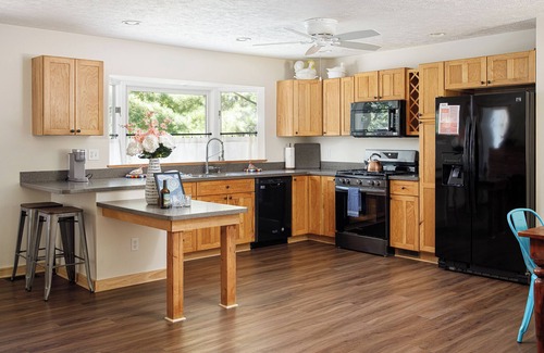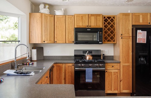 A cook‑ready kitchen stocked with everyday tools and plenty of prep space. Adjacent dining for shared meals, games, and late‑night chats.