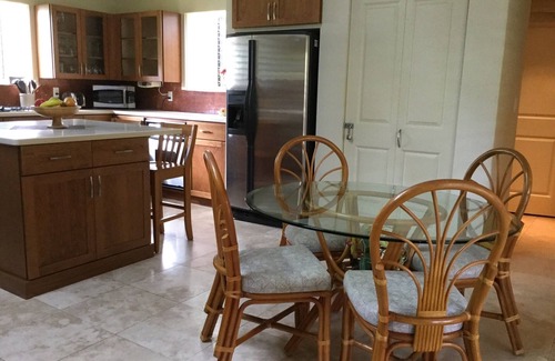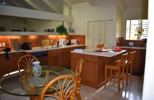 Ideal for one or two couples (or a small family), the Princeville Pool Retreat has all the comforts of home, including gourmet kitchen with central island and lots of counter space, ceiling fans throughout, granite countertops in both bathrooms and clean cool travertine floors.