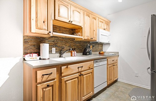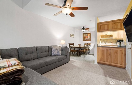 Accessible all year long, this three-story mountain condo offers plenty of space and sleeping quarters to accommodate/entertain a family or group of up to 7. The main level includes the family room, dining area, and fully equipped kitchen with updated appliances and everything you would need to prepare meals after a long day on the slopes. Also on this floor is a large sectional that transforms into pull out queen bed to provide your first two sleeping arrangements. Also on the first floor is a half bath and the first of two smart TVs equipped with Cable and a Amazon Firestick. Go up the stairs and you will find the main bedroom with an additional queen bed, main bathroom with a shower/Jacuzzi Tub combination and large closet. At the top of the stairs you will find a ladder up to the loft where you will find an additional queen bed and twin bed. This space is truly loved by kids as it gives that perfect treehouse type of feeling.