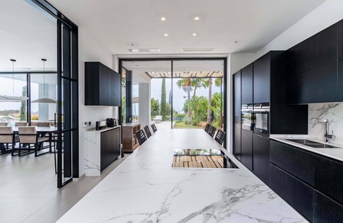 Located in Estepona, this 9-bedroom, 7.5-bathroom villa lets you experience it all. Fans of nature and the outdoors will love being 8 minutes by car from Saladillo Beach and 5 minutes from El Saladillo Beach. Let your feet make short work of the 12-minute walk to Selwo Adventure Park or easily tackle the quick 7-minute drive to Playa El Padrón.