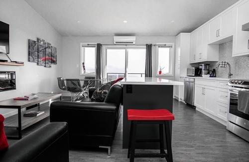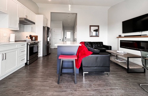This home is ideal for 4 people. The suite is newly renovated and each of the 2 large bedrooms have a king-sized bed. The kitchen is fully stocked with pots, pans, blender, espresso machine, toaster, microwave, ice machine, brand new oven and full-sized fridge. The open concept living room, dining space comfortably sits 4 people and has a large flat screen fiber Optik TV with sound bar, Netflix, Prime video, and Wi-Fi throughout the suite. There is an electric fireplace, heat pump and air conditioning. There is a washer and dryer in the suite for your convenience. The spa like bathroom has a large soaker tub and a stand-alone shower. The 500 square foot deck faces the beautiful view with 4 lounge chairs and patio set with another large private outdoor patio at the front of the house equipped with 4 Adirondack chairs, a fire pit and brand new 6 person hot tub. Owners with two small children live on site so please no parties or loud noise after 9PM. Smoking permitted on the front patio only.
