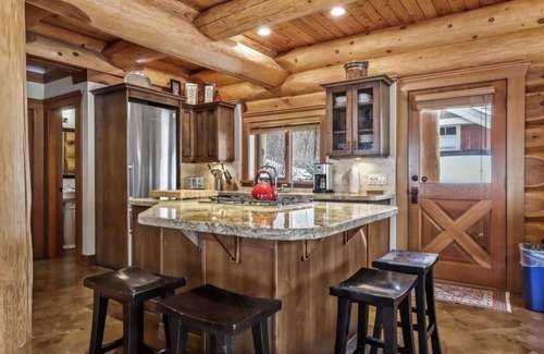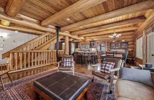 Eagle View Chalet is a beautifully maintained 3-bedroom/3-bathroom rustic retreat located at the corner of Fairways and Mountainview, offering stunning views of all the surrounding mountains.