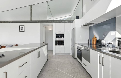 Unwind in the open-plan interior featuring a queen-sized bedroom, a luxurious bathroom with underfloor heating and walk-in shower, and a sun-soaked deck designed to capture the ever-changing seascape. Whether you`re cooking in the gourmet kitchen with premium appliances, enjoying a BBQ under the stars, or relaxing with a movie and a glass of wine, every detail is tailored for a serene, elevated experience.