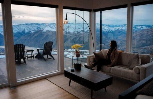 This villa is ideal for a romantic get-away for two guests. Our completely open floor plan features a glass shower, free-standing tub, and modern kitchen all with panoramic views of snow capped mountains and the river below. Our deck is legendary - soak in the views from the jacuzzi or our lounge chairs, and cozy up in front of the fire pit. All of these are specially designed for you and your loved one to enjoy, with total privacy.