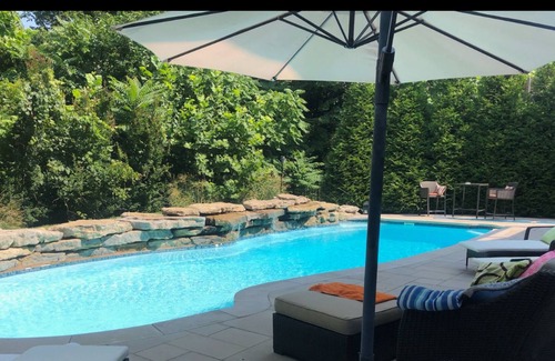 Hello and Welcome to our Fabulous East End home with a Pool with a waterfall! This home features several areas for you and your guests to enjoy the ambiance. This home has 5 bedrooms and 4.5 bathrooms. The heated in ground pool and hot tub will be the highlight of your stay. From the 23' ceilings in the living room to the dual outdoor patio areas, this place will be the highlight of your stay in Louisville. This place would be great for friends or family to take a break. This is a great single family residence!