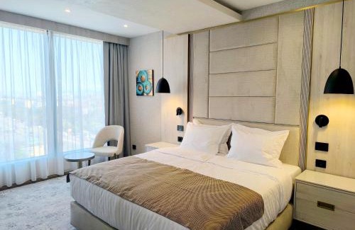 | Food & DrinkBottle of water, Minibar, Tea/Coffee maker, Wine/ChampagneBathroomBody soap, Slippers, Toilet, Shower, Toilet paper, Shower cap, Bathrobe, Shampoo, Conditioner, Towels, Private bathroom, Free toiletries, HairdryerGeneralKey card access, Fire extinguisher, Trash cans, Laptop safe, Carpeted, Heating, Air conditioning, Safe, Smoke AlarmMedia & TechnologyTV, Satellite channels, Flat-screen TV, Cable channels, Streaming service (like Netflix)Living AreaDeskViewCity view, ViewServicesWake-up serviceKitchenCoffee machine, Wine glasses, Electric kettleBedroomLinens, Wardrobe or closetAccessibilityAccessible by elevator, Upper floors accessible by elevator, Emergency cord in bathroomRoom AmenitiesSocket near the bed, Feather pillow |