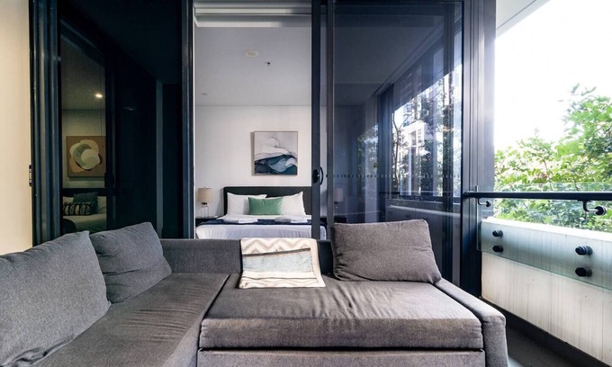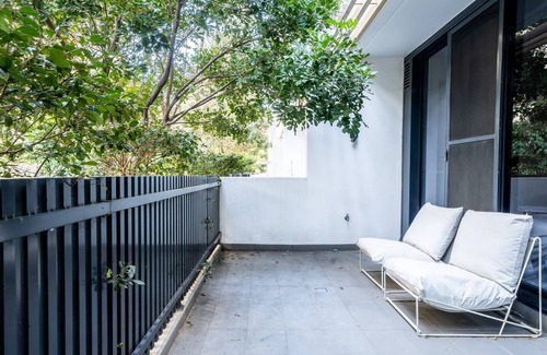 Located on the ground floor of a newly built complex, enjoy direct access from the street with a private entrance. Natural light floods the apartment through floor-to-ceiling windows, and everything is tied together by timber flooring and contemporary artwork. Kick back on the leather sofa and watch TV, while the kitchen and dining area is sure to encourage some at-home cooking with a spacious table and fully-equipped kitchen. Head out to the private courtyard with charming alfresco seating, where you can curl up with a book and enjoy your morning coffee. If you want to work from home, enjoy spending time in our study nook or workstation by the dining area.