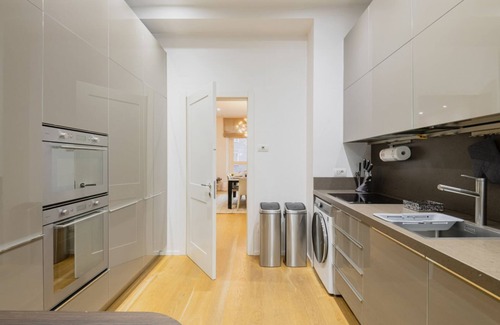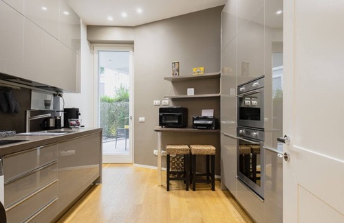 The large living area, embellished with first-class furnishings and design, welcomes guests to a refined space. A smart TV, a comfortable sofa, and a large dining table are the centerpiece of this space, providing an ideal place for convivial moments and relaxation. The fully equipped kitchen, equipped with first-generation appliances and washer-dryer, is a paradise for any cooking enthusiast. You can prepare delicious meals to be enjoyed in the privacy of your private outdoor space, with a small table and deck chairs for moments of relaxation and socializing. The master bedroom, with large closets and smart TV, is a suite of elegance and refinement, where you can retreat to for maximum comfort. An extra room with twin beds, large closets and access to the private garden provides a flexible space ideal for guests or families. The two bathrooms, one with a tub and one with a shower, are an elegant expression of design and functionality. Attention to detail is reflected in every nook and cranny of this residence, creating an atmosphere of uncompromising charm and well-being. Experience the art of Milanese living in this extraordinary apartment, where every detail has been thought out to provide a residence that lives up to your expectations. With an enviable location and refined design, this is your luxury retreat in the heart of Milan.