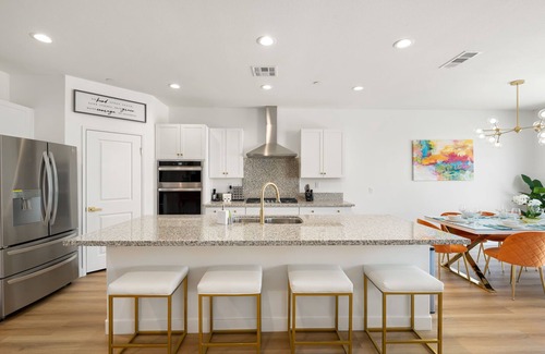 This wonderfully designed home features countless amenities including a pool, infinity spa, outdoor kitchen, fireplace, golf course, billiards, soccer table, ping pong table, corn hole & more! Everything you see is brand new.