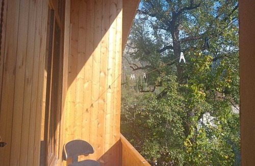 This unique eco-cottage in the center of the resort Borjomi offers a pleasant cozy two isolated bedrooms with independent showers, individual balconies. The beds 1 double and 4 single are also made of natural wood. The living space is arranged in a studio style, with a kitchen area, bathroom and balcony. The cottage is equipped with the necessary household appliances and a central heating system.