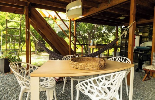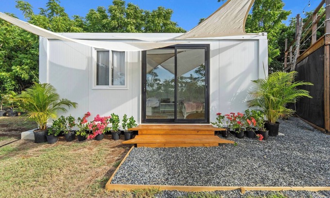 Green Cottage #3 – Plantain View is a unique glamping experience located in the heart of Hacienda Verde Tahiti. This private two-story retreat sits within a lush Plantain field and is the only one on the farm with its own private pool. The first level includes a fully equipped kitchen, a bathroom, an outdoor shower, a dining table, a deck, and the pool. On the second level, you’ll find a serene space with panoramic views of the ocean and Plantain field.Guests can fully immerse themselves in nature with access to the entire 25-acre farm. You’ll have the opportunity to explore, relax, and enjoy common areas designated for socializing. For sports enthusiasts, we offer a private beach tennis court, available for one hour per day, free of charge.To ensure a peaceful and comfortable stay, we ask guests to be considerate of noise levels. Our three farm dogs are part of the charm, and we hope you'll enjoy the natural beauty of the area.Located just 20 minutes from La Parguera, Combate, and Boquerón, you’ll have access to beaches, delicious food, and incredible views.