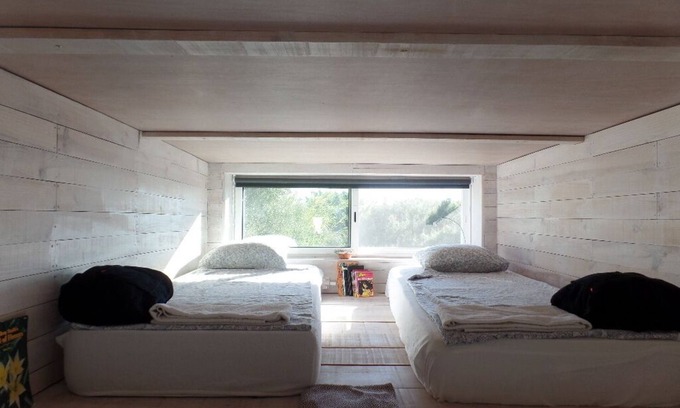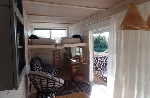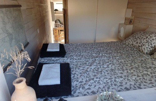 This studio has 01 double bed on a wooden mezzanine and 2 single beds also on a wooden mezzanine, living room / kitchen equipped with fridge, induction hob, toaster, Nespresso machine, hand blender;