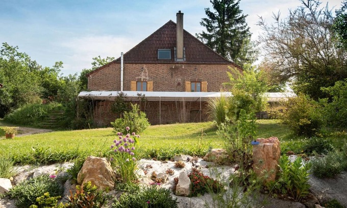 Yvan, expert in eco-construction and Ramatara, yoga teacher, welcome you in an authentic 1882 country house, carefully renovated in a global ecological approach, on a vast natural domain of 7 ha. Peaceful, typical little hamlet nestled in the heart of the Bresse countryside on the banks of the Seille, a remarkable ecosystem classified as a Natura 2000 zone (reserve of migratory birds, rare plant species, numerous fish including the famous catfish, animals and wildlife, etc.) . Nestled in the hollow of a pleasant, unspoiled setting of nature and greenery on the edge of meadows & forests, landscaped in a spirit of permaculture and "micro farm" without nuisance (donkey, pony, chickens, ducks, geese, beehives ...), the The property has a natural bathing area (shared), a wellness room with hammam & massage room (paid professional services) and a hiking trail in the forest. Warm country character, cozy and cozy. Zen and gentle atmosphere. Large exposed and shaded gravel terrace adjoining a private garden. Composition: Detached house next to another building (including wellness room, yoga room and reception) and the owners' house (total independence without vis-à-vis). Wireless. Solar central heating + wood stove. Ground floor: living room-kitchen-lounge (TV / video projector, piano), 2 bedrooms (double bed 140x190cm / 2 single beds 90x200cm) including 1 with private multi-jet hammam shower, bathroom (multi-jet shower ), Separate toilet. 1st floor: second living room-kitchen (dining area, PC office), 2 bedrooms (double bed 140x190cm / 4 single beds 90x200cm including 2 bunk beds), bathroom (balneotherapy bath, shower, WC). 2nd floor: mezzanine bedroom (2 single beds 90x200cm). Private terrace + small garden (ping-pong table). Parking + local bicycles + private electric car charging socket. Common land 7 ha. Natural swimming area (shared). Shops & services 11 km.