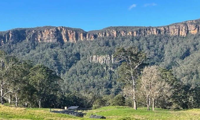 Relax and take in the golden escarpment and valley views from the outdoor sofa under the covered patio. Cook up a sumptuous meal on the Ziegler & Brown BBQ or in the fully-equipped spacious kitchen. Move on to the super-comfy sofas by the open log fireplace (winter) and still enjoy the views. After dark, grab the marshmallows and try the outdoor fire pit and stargaze with almost no artificial light. Retire to your bedroom, with its private ensuite, for a country-silent sleep. In the morning, grab a coffee, lie in bed with a book and take in the views of the escarpment and wildlife from the full- length window. During the day, enjoy any number of walks or runs around the 146 acre property and keep your eye out for a range of wildlife including kangaroos, wallabies, foxes, echidnas, deer, goats and loads of birds. For the fit, walk down the trail through the forest to the creek to explore over a kilometre of creek frontage and enjoy the Olympic-size natural swimming hole in the creek. There is also a glow worm sanctuary on the property details available after booking.