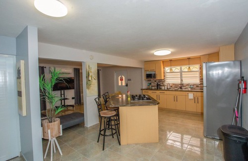 ** Accommodation: ** Experience comfort and convenience in our spacious apartment, perfectly designed for 4 guests and is fully design for handicap. Dive into the luxury of a bedroom boasting 1 Queen bed and 1 sofa bed, all complemented with soft sheets and plush pillows. Unwind in the generous living room with a large sofa and savor the privacy of a bathroom. Whip up gourmet meals in a kitchen equipped with a gas stovetop, full-sized refrigerator, microwave, coffee maker, toaster, and all the essential utensils. Stay connected and entertained with high-speed Internet and a Smart HD TV offering Netflix. Step outside to enjoy a refreshing pool, a cozy patio, and a lush backyard. While these outdoor amenities are shared with other guests, they promise delightful moments of relaxation. Added perks include a private entrance. Your ideal Cabo Rojo retreat awaits!