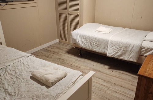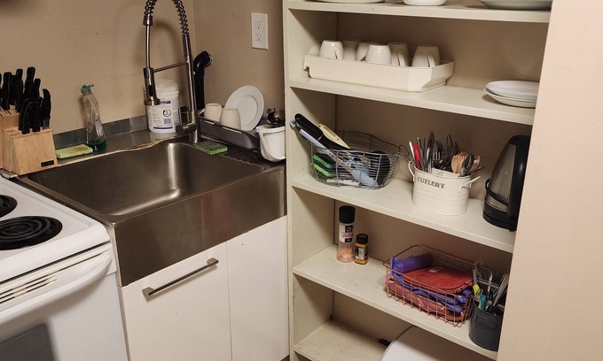 The basement contains 3 bedrooms and a full bathroom and a full kitchen. Coffee and coffee mate will be provided.