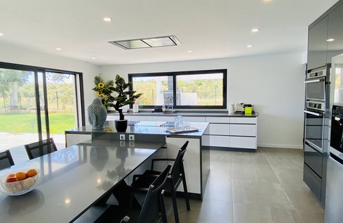 House in Albufeira of 350 m² furnished with taste and of recent construction for up to 14 people,CHARACTERISTICS OF THE HOUSE:ROOMS: with 6 meticulously decorated rooms, all with double beds and en-suite, 3 of them have a view and access to the garden and pool.ROOM: Spacious living room with access to swimming pool, with Wi-Fi internet access, air conditioning and heat pump heating.AMERICAN KITCHEN: in open plan fully equipped.LOCATION: Located just 3 km from the stunning sandy beaches, such as Peneco Beach and Fishermen's Beach, this villa is conveniently close to popular restaurants, like Catraio and Fisherman's Tavern.EXTERIOR: Spacious garden with a private swimming pool, a spacious 50 m² terrace and a barbecue for outdoor meals.ENTERTAINMENT AND LEISURE: near attractions such as the Zoomarine amusement park and the Salgados Golf Course.PARKING: With outdoor parking available in the same building.This villa is the perfect refuge for unforgettable holidays in the heart of Albufeira, providing a harmonious combination of comfort, convenience and natural beauty. Book now and prepare yourself for a unique experience in this paradise.Note: The main house has four bedrooms and there are 3 additional rooms in an annex with access from the outside of the property.RNAL: 116467/ALNote:Our property requires a deposit of 1000 €. Close to the check-in date, a request is sent to block the deposit on the credit card.According to the municipal regulation, each guest shall pay a tourist tax of two euros between 01 April and 31 October and will be charged up to a maximum of seven consecutive nights for all guests aged 13 years or older. The tourist tax amount is not included in the reservation value.