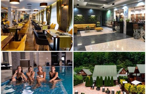EDEN Rajskie Spa features a garden, terrace, a restaurant and bar in Rajskie Sakowczyk. Featuring room service, this property also provides guests with a playground. The resort has an outdoor swimming pool, fitness center, evening entertainment and a kids' club. The rooms is fitted with air conditioning, a flat-screen TV with cable channels, a fridge, an electric tea pot, a shower and a desk. The resort has certain accommodations that have a balcony and river view, and rooms include a private bathroom and a closet. EDEN Rajskie Spa has a grill. You can play table tennis at the accommodation, and the area is popular for hiking and skiing. Polonina Wetlinska is 26 miles from EDEN Rajskie Spa, while Chatka Puchatka is 27 miles from the property. Rzeszów-Jasionka Airport is 83 miles away.