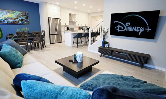 Complimentary WiFi, Disney+, coffee and tea. The kitchen comes fully loaded with brand new appliances such as a microwave, fridge, stove and dishwasher along with glasses, mugs, dishes and cutlery.