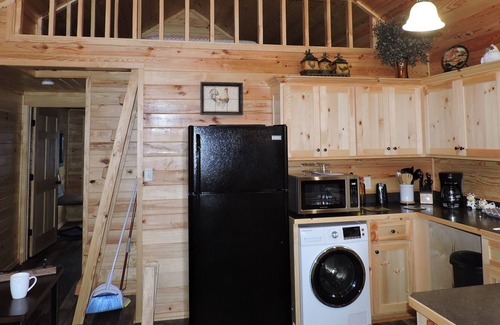 Time to come and enjoy DeGray Lake State Park. There are two small cabins: one queen bedroom, queen sleeper loft and a full size futon in the living room. Ideal for small family or a couple or friends getaway. If you ever wanted to try tiny house living, now’s your chance. The cabins are 512 sq feet. They have a full size shower, full size refrigerator, convection/microwave oven, a two top induction burner and a mini-split heat and air system! Green, green, and cozy! Charcoal grill. Cabin faces tee 3 of the DeGray Lake State Resort Golf course.