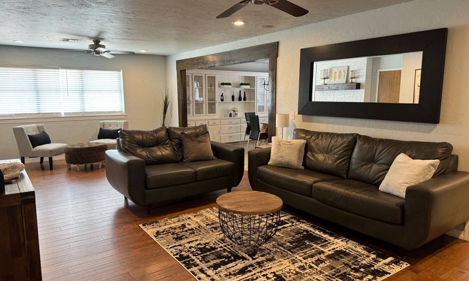 Take a break and unwind at this peaceful oasis. Open and bright, comfortable and cozy! Great backyard space and patio for relaxing or entertaining. Great location! Walking distance to E.C. Hafer Park. Target and Walmart within 5 minute drive. 4 minutes from the University of Central Oklahoma. 4 minute drive to Kickingbird Golf course. 8 minute drive to Arcadia Lake. 14.6 miles drive North of Oklahoma City. 27 miles from Will Rogers World Airport.