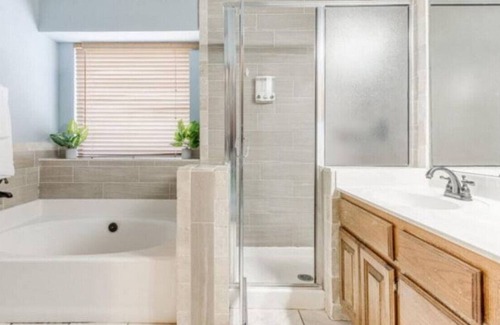 This home pairs privacy and convenience with two full bathrooms, one with a combination bathtub and shower, the other has a separate shower and oversize bathtub. Fresh fluffy towels are ready for your arrival as well as complimentary bath products.