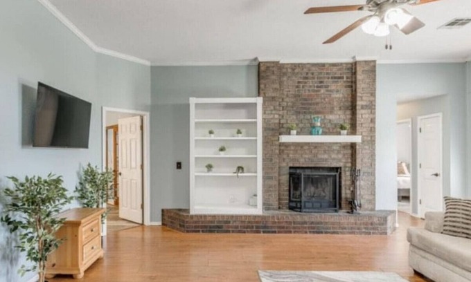 This private home is based in a quiet neighborhood just a short drive from local attractions and great restaurants. The whole house is geared for longer stays with modern amenities that ensure a relaxing stay. With a workspace, a full kitchen, and a spacious backyard, the home is perfect for the whole family or business travel.