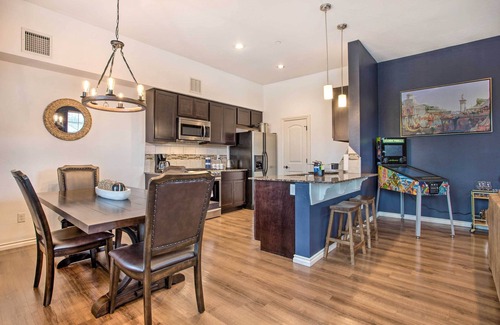 Discover Oklahoma’s unique charm at this Edmond townhome with a patio, a workspace featuring a complimentary computer and a whiteboard, a huge walk-in closet, and more! This 2-bedroom, 2.5-bath vacation rental is conveniently located near outdoor activities and fun attractions: enjoy days on the water at Lake Arcadia, catch a Thunder game at Paycom Stadium, or visit the University of Central Oklahoma! Then, return home and watch a movie on the Smart TV or play on the pinball machine!