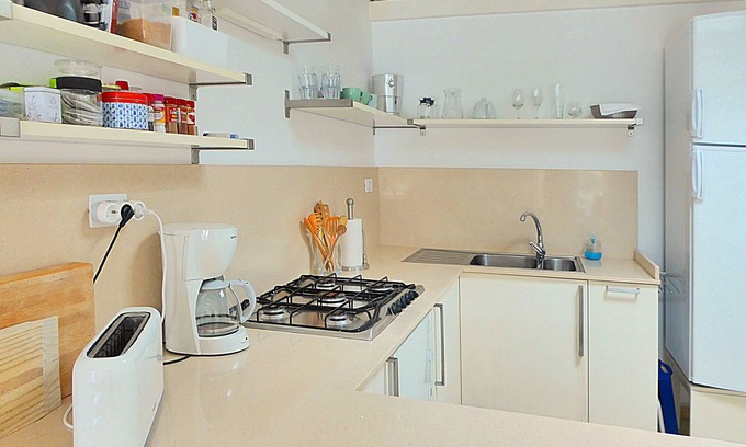 Interior: Dining/living room with access to a terrace, fully equipped kitchen with 4 burner gas hob, electric oven and dishwasher etc 2 bedrooms, one with grand king size bed 1.8 x 2.0m, the other with single bed 0.9 x 2.0m, 1 bathroom with shower.