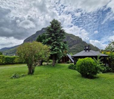 BathroomHairdryer, Toilet, Shampoo, Toilet paper, Bathtub or shower, Shower, TowelsMedia & TechnologyFlat-screen TV, TV, Cable channelsGeneralKey access, Fan, Iron, Heating, Ironing facilities, Private entranceKitchenCleaning products, Kitchenette, Washing machine, Electric kettle, Toaster, Kitchen, Oven, Microwave, Refrigerator, KitchenwareOutdoorsPatio, BarbecueLiving AreaSofaViewView, Garden view, Mountain viewBedroomLinens, Wardrobe or closetAccessibilityUpper floors accessible by stairs onlyRoom AmenitiesClothes rack, Non-feather pillow, Drying rack for clothing, Socket near the bed |
