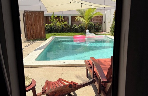 Enjoy the stylish atmosphere of this intimate and complete accommodation, perfect for family vacations or teleworking with its independent wifi network and including private outdoor swimming pool and kitchen. It has 2 bedrooms as well as a bathroom with a shower with hot water, which is very rare in the region.