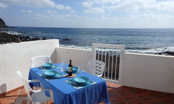 Spend some unforgettable days in a house with all amenities closed to a pebble beach in the picturesque village of Igueste de San Andrés, located in the south-east coast of the famous Anaga Mountains, Nature Heritage from the UNESCO. You will easily find the house through a comfortable footpath of approximately 400 m from the main road. In the house you will find on the first floor a living room with a sofa bed, a full equipped kitchen, a laundry room and a bathroom with shower. A spacious bedroom with an additional bed and another bathroom with shower is in the upper floor. It is impossible to live closer to the sea and to enjoy the peace and the nature of the Anaga Mountains with the corresponding sport facilities. In a few minutes walk from the house you will also find a lonely beach of fine black volcanic sand.