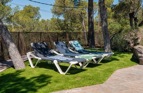 You will undoubtedly spend most of your time outside, relaxing on one of the terraces, chilling in the lounge set or on one of the sunbeds around the beautifully shaped swimming pool. Because the garden is surrounded by the typical pine trees that you find everywhere on the Costa Brava, there are plenty of places in the shade.