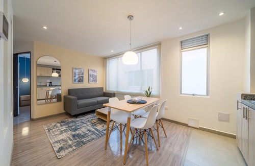 "Anima 64 is an excellent accommodation choice in Bogotá for those seeking a modern and minimalist space for their stay. It is located in Chapinero Alto, close to the city's most popular tourist destinations. The building features 24 apartments, each equipped with everything you need for a comfortable and enjoyable stay. The apartment includes a semi-loft bedroom with a maximum capacity of 4 people."