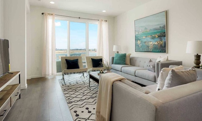 This modern, chic house in Longmont is the perfect home away from home. Relax with your family in the cozy living room and admire the stunning open view. The newly renovated kitchen features a center island, perfect for preparing delicious home-cooked meals with your loved ones. The property also boasts a spacious office area, ideal for those who need to work from home. The living room features professionally designed furniture and a fireplace for cozy viewing and heating during the snow season. Enjoy the ultimate comfort and luxury while staying in this exquisite home.