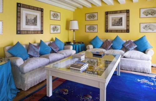 Generously proportioned to sleep six guests. Impeccably decorated with a mix of antiques and vibrant colors, featuring sunny Mimosa yellows, vivid Prussian blues, crisp white beamed ceilings, and polished hardwood flooring. Located between the first and second floors, accessible by lift to the second floor, with one flight of stairs to descend.