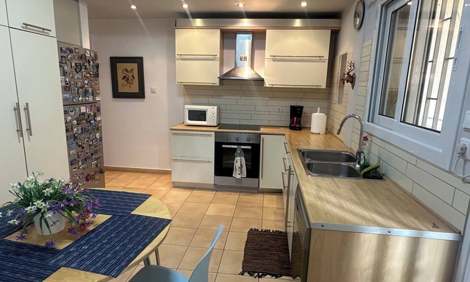Bathed in natural Mediterranean light throughout the day, this thoughtfully designed space offers a stylish yet unpretentious atmosphere—sophisticated without being sterile, inviting without feeling overly casual. For your comfort, the apartment features air conditioning throughout and high-speed WiFi to keep you connected.