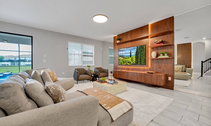 Welcome to your dream vacation home! This fully renovated 9-bedroom, 6-bath villa in Kissimmee accommodates up to 20 guests in total comfort. Enjoy the spacious open floor plan, a stylish loft, and an incredible media/theater room perfect for family nights. The modern kitchen is fully equipped, and every bedroom is beautifully designed. Just minutes from Disney and top attractions, this luxurious retreat is ideal for large families or groups seeking space, style, and fun!