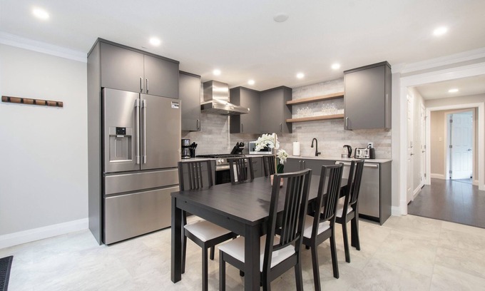 Welcome to our spacious 1,550 SqFt (144 SqM) private suite in the forest! This beautiful and serene suite is perfect for outdoor enthusiasts, families, friends and couples looking to explore the North Shore, City and Mountains. The suite features safe and private parking, chef's kitchen, 2 bedrooms (king and queen memory foam), comfortable couch+lounge chair, washer+dryer and plenty of storage space. Located in Upper Lynn Valley, epicenter for outdoor enthusiast activities. Less than 5 minute bike ride and you're on Fromme Mountain. For walkers, hikers and trail runners 10 minutes walk to base of Fromme Mountain, Lynn Canyon, and Lynn Headwaters. 10-minutes by bike to Rice Lake. Here for business? 15 minutes drive to downtown Vancouver. Here to explore? 15 minutes drive to Stanley Park. Reach out with any questions! We can't wait for you to experience the magic of North Van.