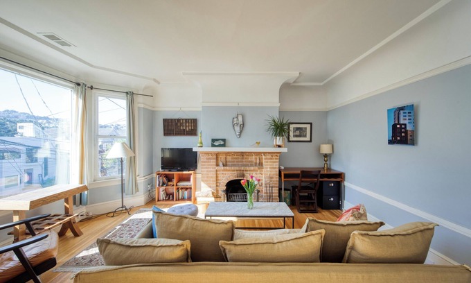 Spacious (960 sq. ft.) flat in the heart of San Francisco's most colorful district, but on a quiet residential street. Close to bars and restaurants and multiple MUNI/BART lines. Fully equipped renovated kitchen. TV with Netflix, Amazon Prime, Hulu, Max, Apple TV. Washer/Dryer in the garage. The unit is clean, fresh, and well furnished with an artistic flare, while properly honoring its Edwardian roots. Hardwood floors, high curved ceilings, excellent feng shui, if you believe in that sort of thing.
