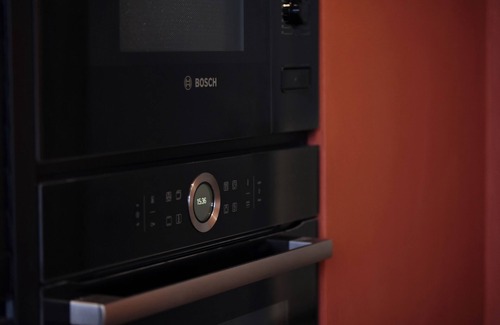 • Kitchen: High-quality Bosch appliances, plenty of storage, and access to a small balcony.